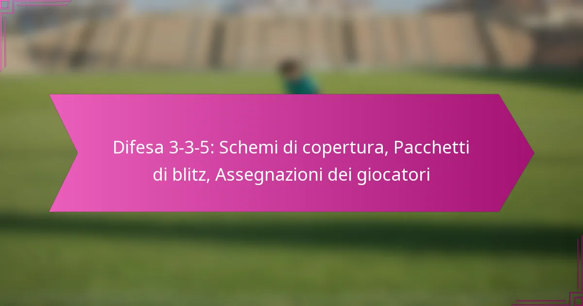 La difesa 3-3-5 impiega diversi schemi di copertura, concentrandosi principalmente sulla copertura a zona e uomo. La copertura a zona consente ai difensori di coprire aree specifiche del campo, mentre la copertura a uomo assegna a ciascun difensore un giocatore offensivo specifico.