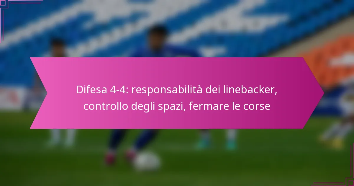 La difesa 4-4 impiega varie tecniche per un’efficace fermata delle corse, concentrandosi sul controllo delle aperture e sulle responsabilità dei linebacker. Le strategie chiave includono tecniche fondamentali di placcaggio, aggiustamenti di formazione, strategie situazionali e l’uso del blitz per migliorare l’efficacia difensiva.